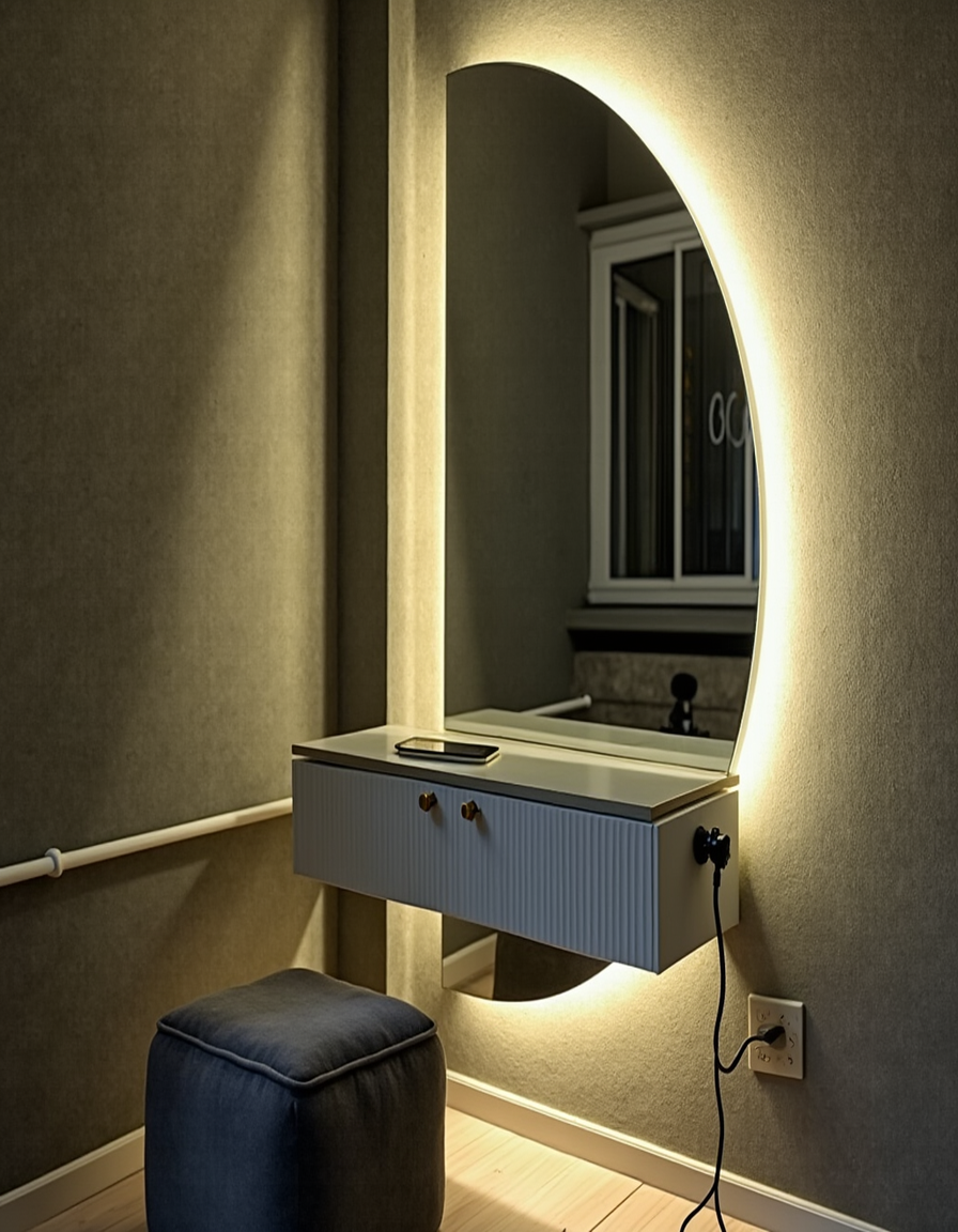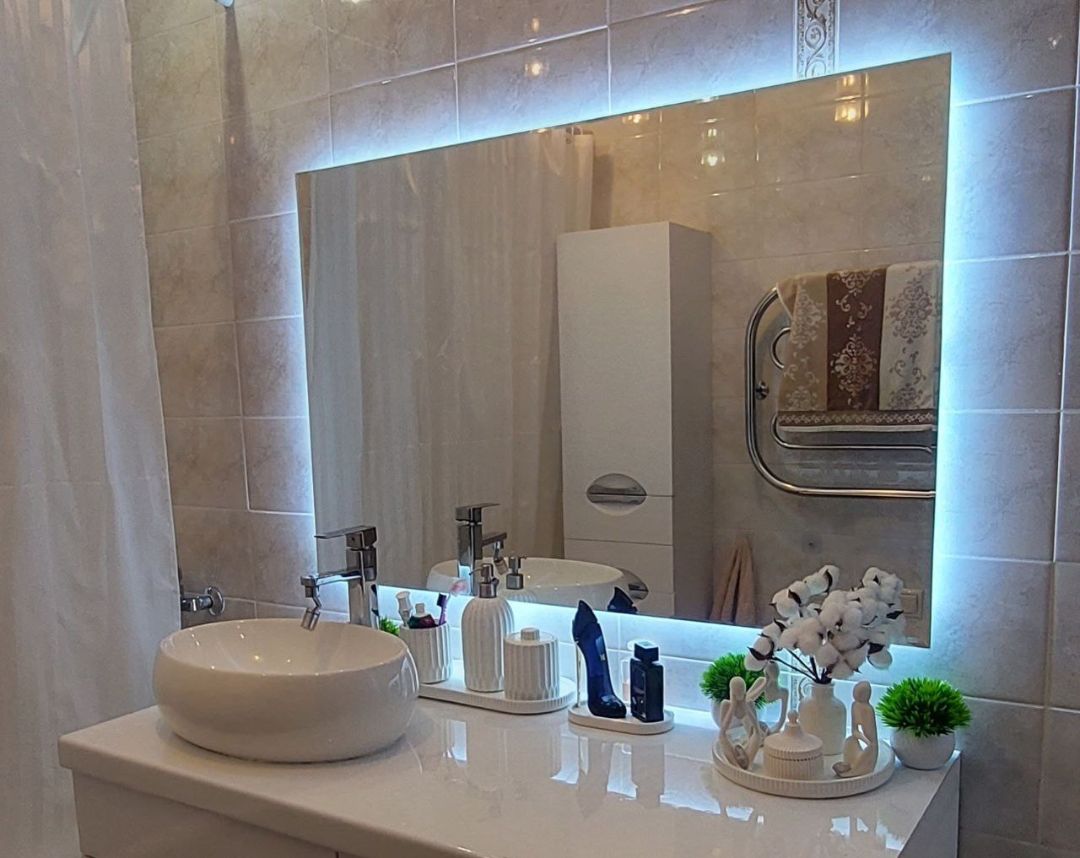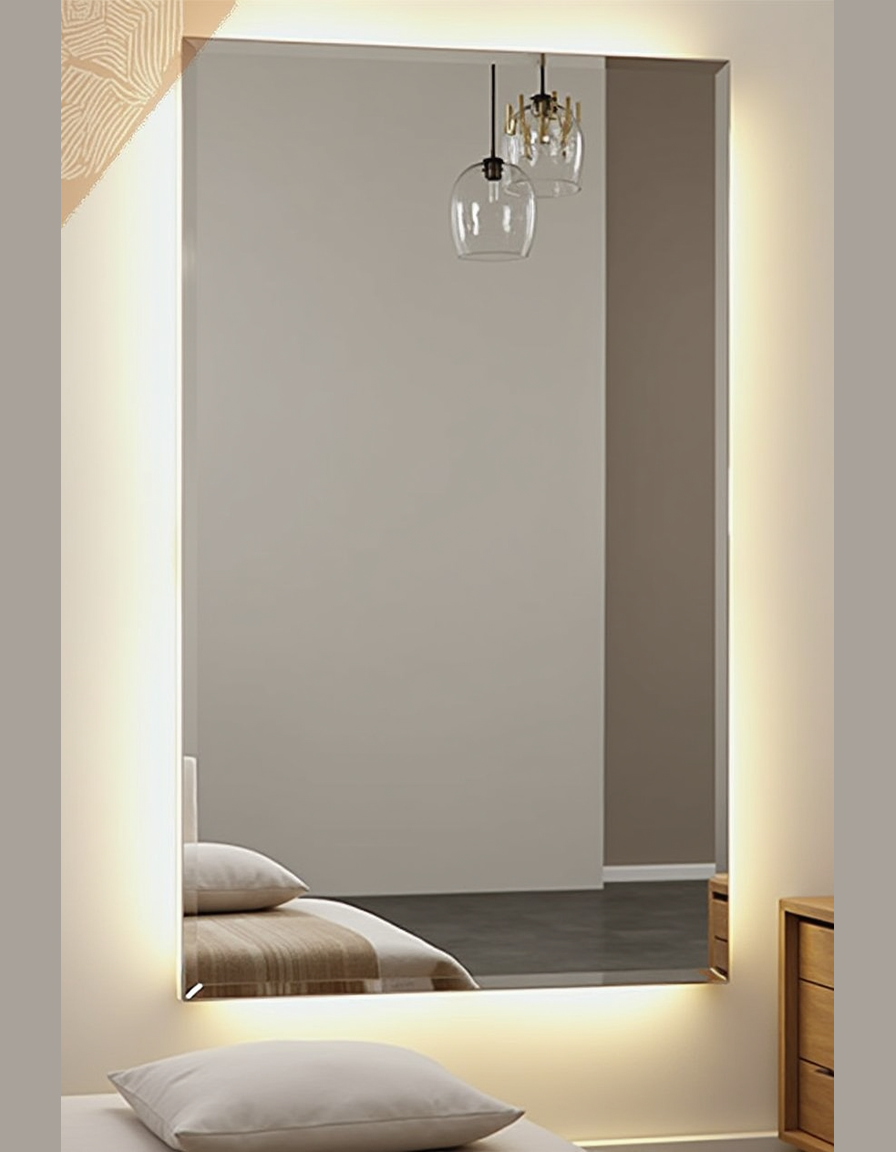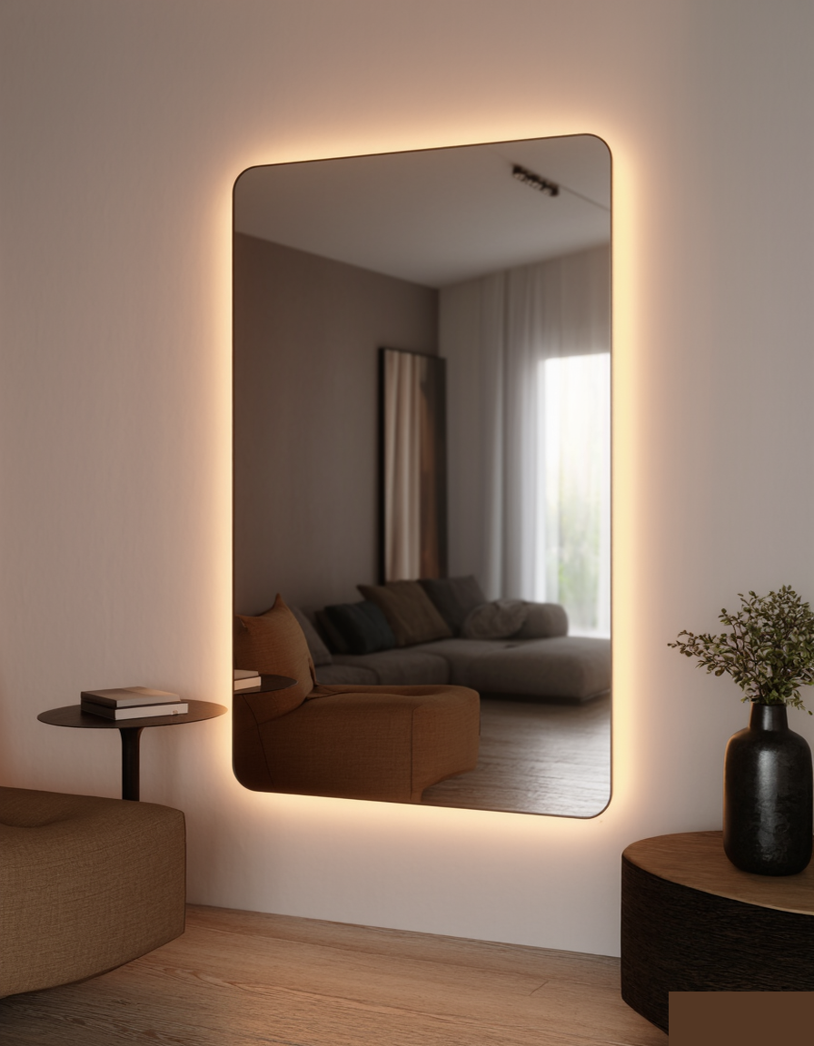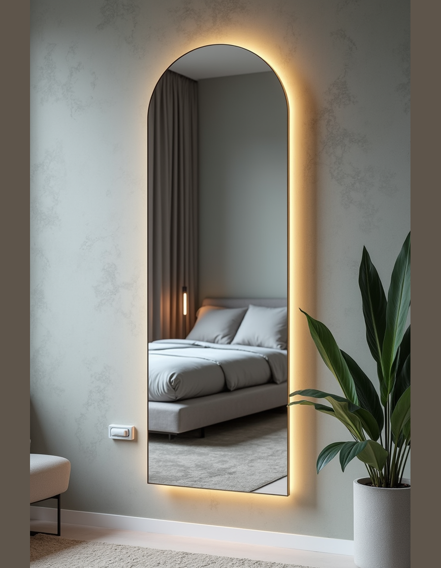 Стильное зеркало с мягкой скрытой подсветкой, создающей эффект парения и уютное свечение по периметру.