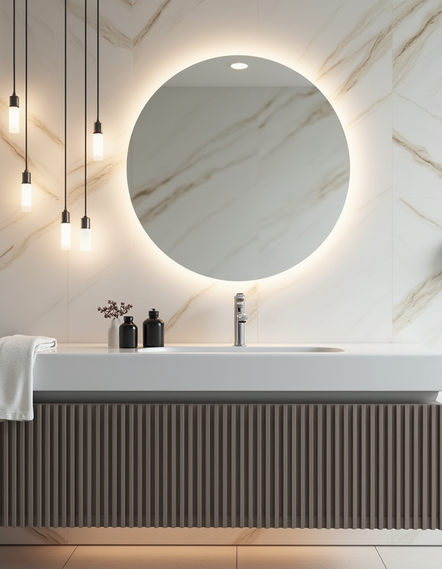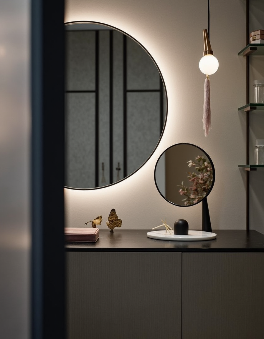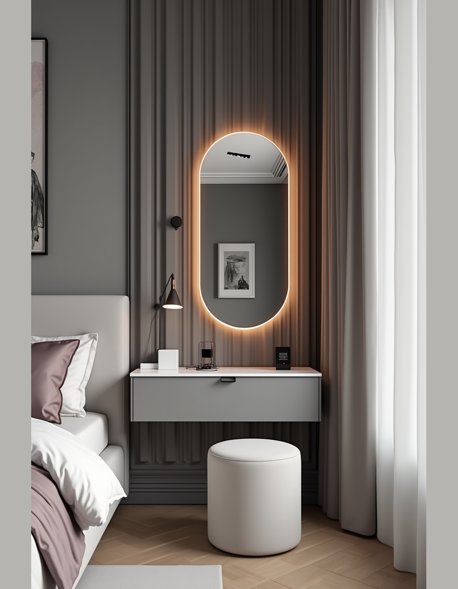 Подходит для ванной, спальни, прихожей и других современных интерьеров.