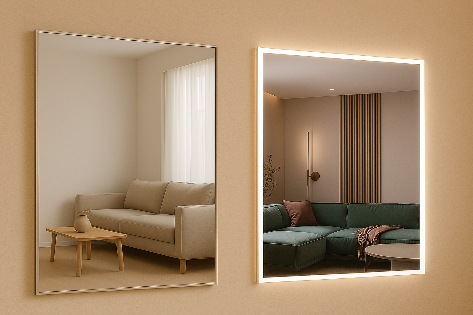 Мы используем только качественные материалы: влагостойкое стекло, алюминиевый профиль, премиальные комплектующие. Каждое зеркало проходит ручную сборку и контроль качества — вы получаете не просто товар, а изделие, сделанное с душой.